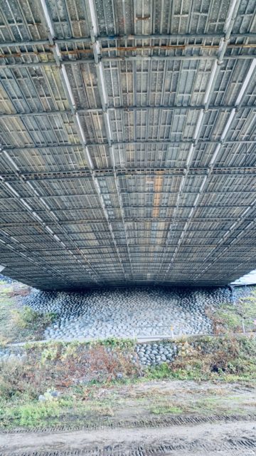 富山県滑川市で橋桁塗り替え工事に伴う吊り足場組立工事を行いました。現場環境は良好で、基本橋の下から資材を渡す事ができた為スムーズに工事を行う事が出来ました。また下まで車も乗り入れる事ができたので道路上の車両規制も行う事なく極力近隣の方々にご迷惑をかける事なく工事出来たのも良い所でした。