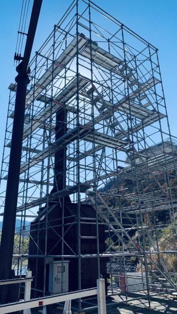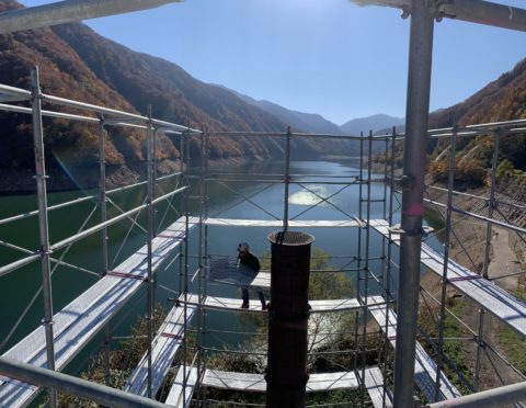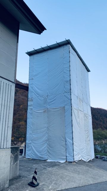南砺市五箇山で焼却炉解体に伴う解体養生組立工事を行いました。今回はダイオキシンも絡んでいたので上屋工事も一緒に行いました。資材は次世代足場のIQ材を用いて先行手摺仕様での組立工事でした。直接工事とは関係ありませんが、景色が良く自然豊かな場所での工事でしたのでいつもとは違う感じで気持ち良く作業を行う事ができました。この様に色んな所で仕事が出来るのも現場の魅力の1つだと思います。