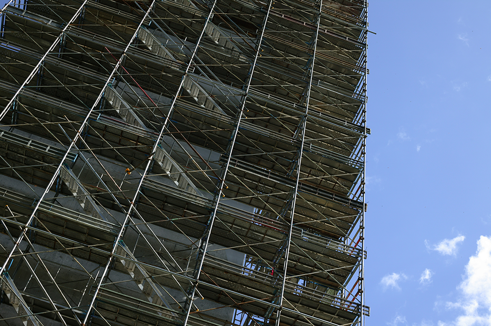 住宅・ビル・マンションなど、建物全般の新築工事・改修工事・リフォーム工事にともなう足場工事を行ないます。規模の大小や用途は問いません。単管足場・枠組足場・クサビ緊結式足場・吊り足場・次世代足場など多岐にわたる工法を扱っているため、複雑な形状や立地での足場施工にも柔軟に対応いたします。隅々まで工夫を凝らし、作業者さまの安全と作業効率を第一に考えて施工いたします。